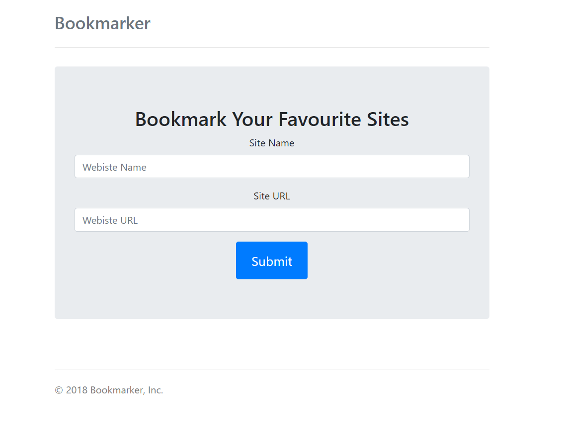 View DemoA Javascript project which lets you add websites to a list and visit or delete them. Acts like a bookmarker.